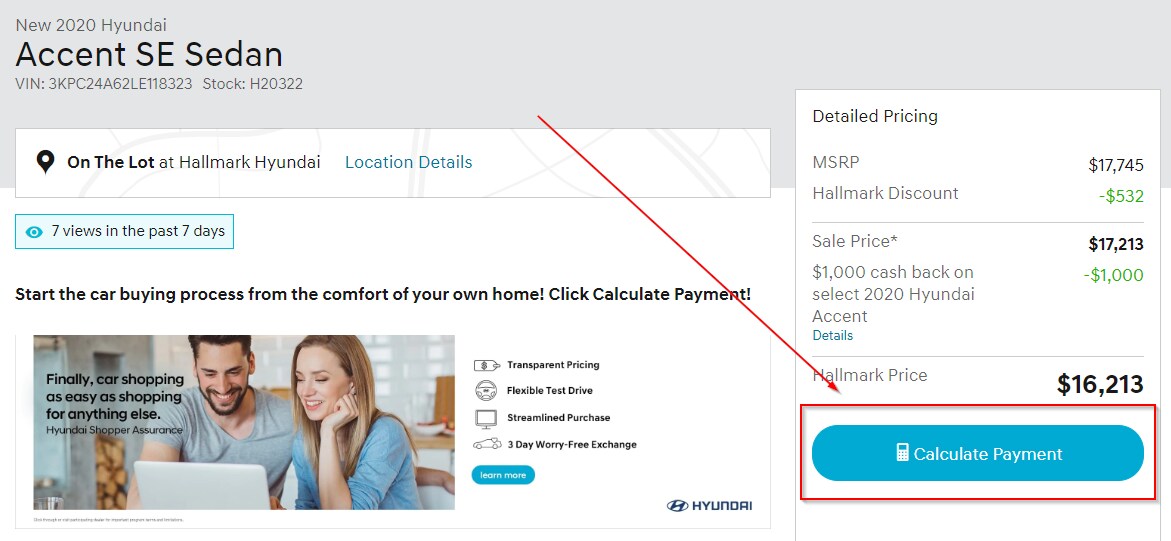 On any of our vehicle pages, you can click on the "Calculate Payment" button to see our available tools.